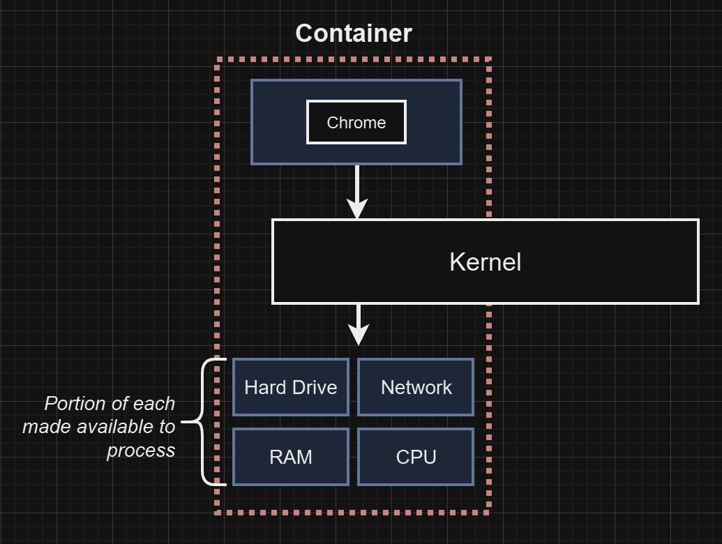 A Docker container is a process or a set of processes with isolated resources that are logically (not physically) allocated from the hard drive by the kernel using namespacing and cgroups. Each container has its own lifecycle, see Docker Container Lifecycle for more information.
